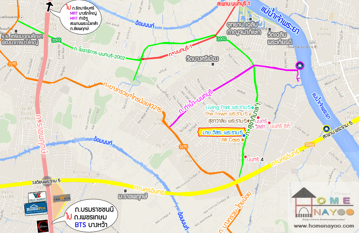 และผ่านโฮมโปร กับวิลล่า มาร์เก็ต ราชพฤกษ์จากนั้นขับตรงไปถึง วงเวียนพระราม5 แล้วเลี้ยวขวาไปสะพานพระราม 5 เพื่อเข้าสู่ ทางคู่ขนาน ถนนนครอินทร์ ค่ะ