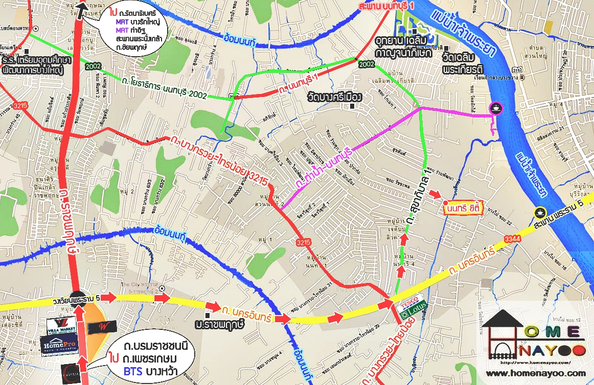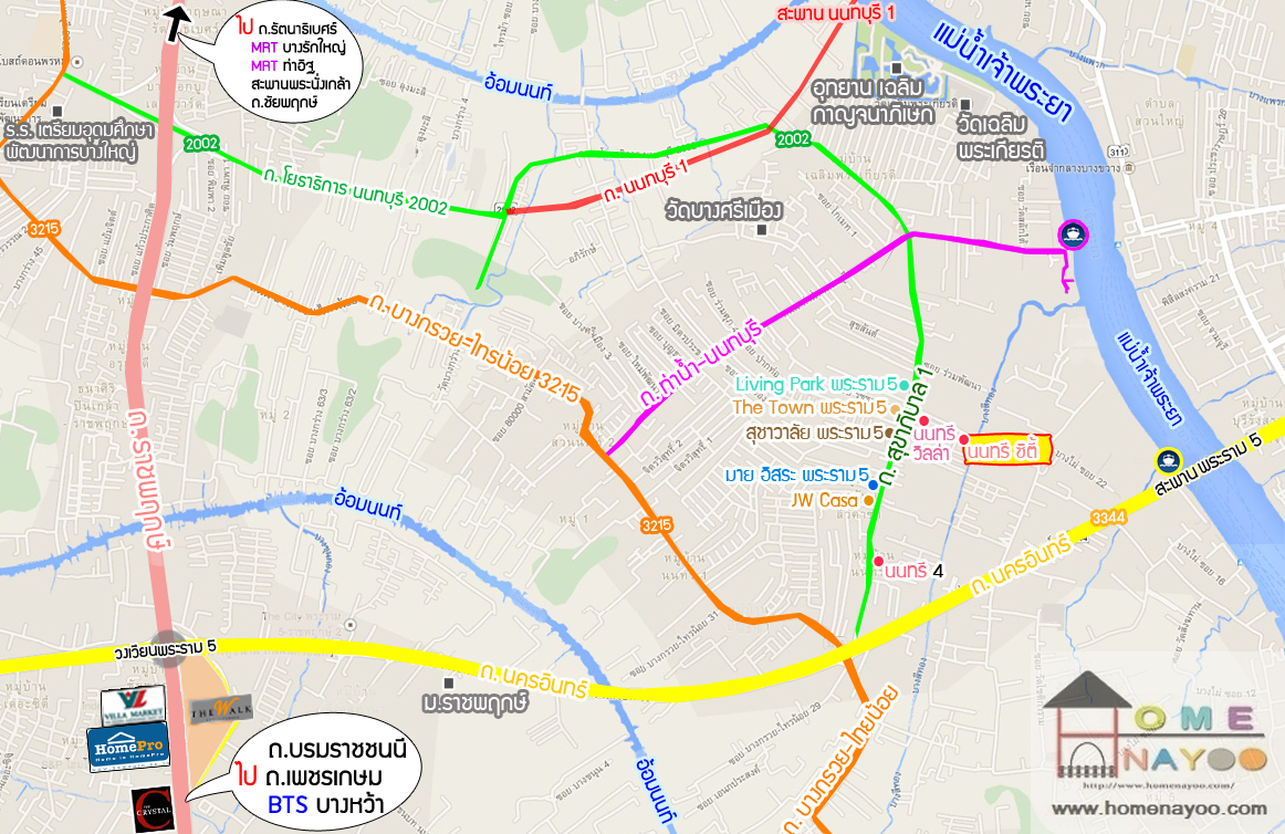 และผ่านโฮมโปร กับวิลล่า มาร์เก็ต ราชพฤกษ์จากนั้นขับตรงไปถึง วงเวียนพระราม5 แล้วเลี้ยวขวาไปสะพานพระราม 5 เพื่อเข้าสู่ ทางคู่ขนาน ถนนนครอินทร์ ค่ะ