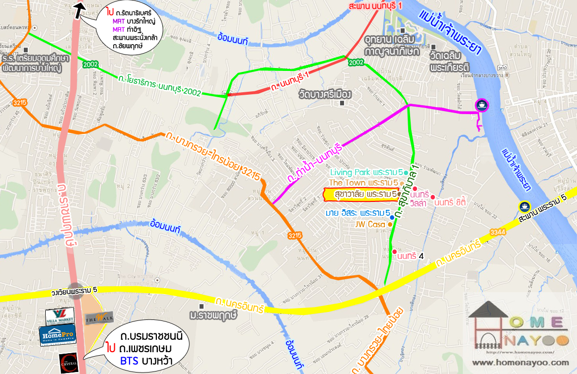 และผ่านโฮมโปร กับวิลล่า มาร์เก็ต ราชพฤกษ์จากนั้นขับตรงไปถึง วงเวียนพระราม5 แล้วเลี้ยวขวาไปสะพานพระราม 5 เพื่อเข้าสู่ ทางคู่ขนาน ถนนนครอินทร์ ค่ะ