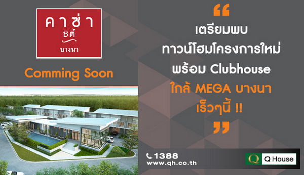 บริษัท ควอลิตี้ เฮ้าส์ จำกัด มหาชน เตรียมส่งทาวน์โฮมโครงการใหม่ล่าสุด “คาซ่า ซิตี้ บางนา Casa City Bangna” ทาวน์โฮมพร้อม Clubhouse ใกล้ MEGA บางนา แล้วพบกันเร็ว ๆ นี้